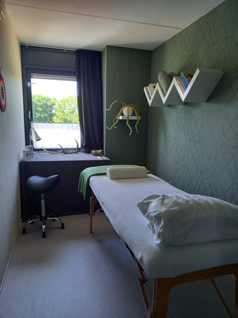 Ik ontvang je in een mooie ruimte met behandeltafel op de bovenste verdieping van ons huis. Ik laat je even landen en we praten over wat je bezighoudt en daarna vraag ik je om op de behandeltafel plaats te gaan nemen( kleding blijft aan).